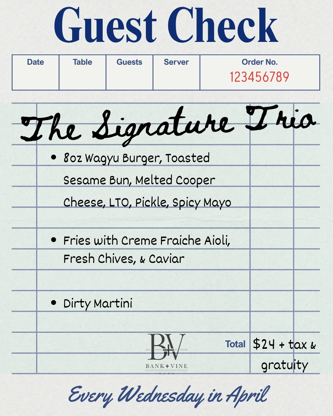 Bank + Vine – Signature Trio April 8 @ 5:00 pm - 9:00 pm Bank+Vine 268 S. Main St., Wilkes-Barre, PA, United States Bank+Vine