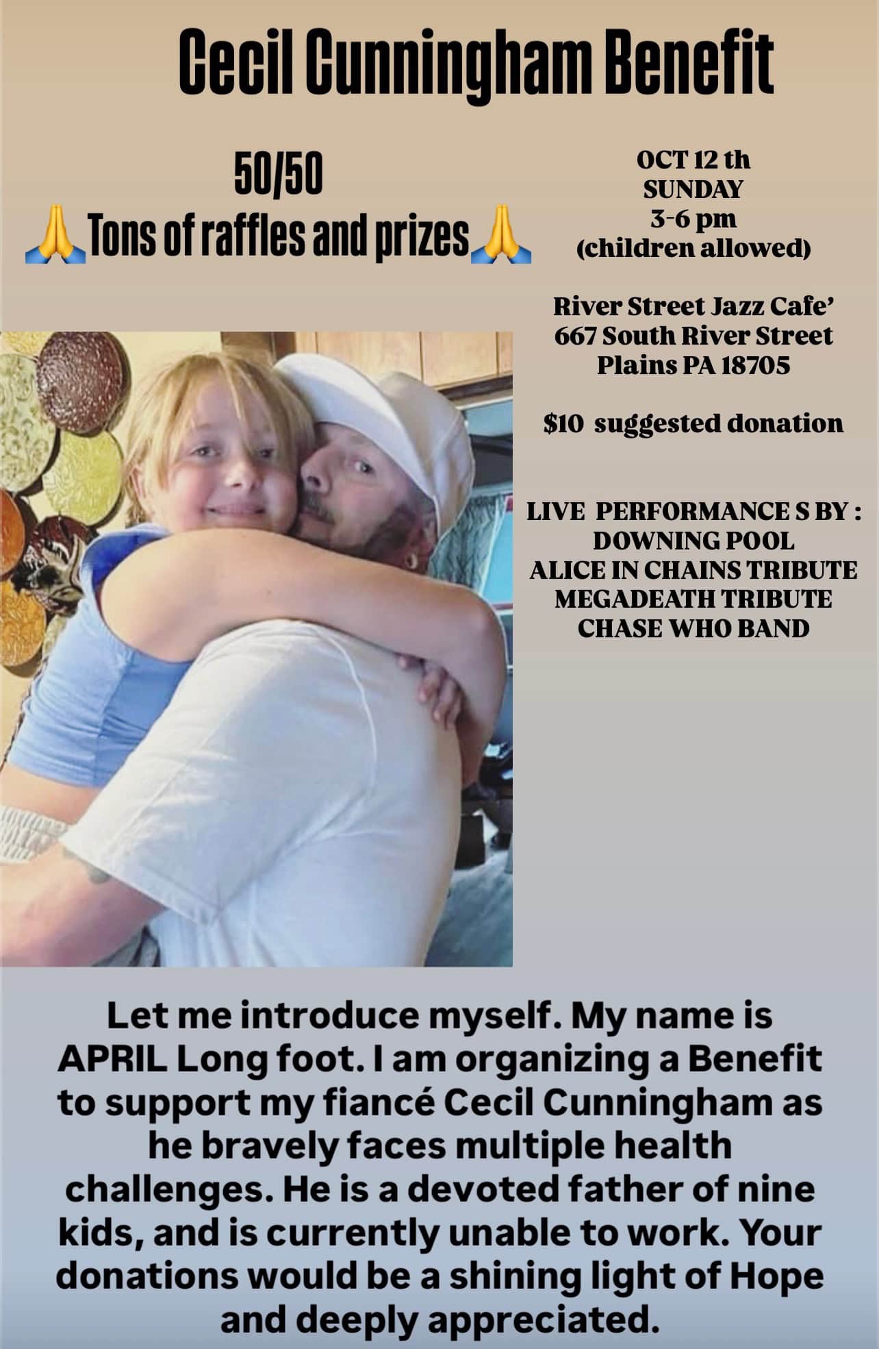 Sunday, October 12th 2025 Join us for a day of music at The Jazz, Benefiting Cecil Cunningham.live acts include Sweating Bullets - Megadeth Tribute & Chase Who Band plus more to be announced. DOORS OPEN AT 3:00 PM TICKETS ARE A $10 DONATION & CAN BE PURCHASED AT THE LINK BELOW. DONATIONS MAY ALSO […] |